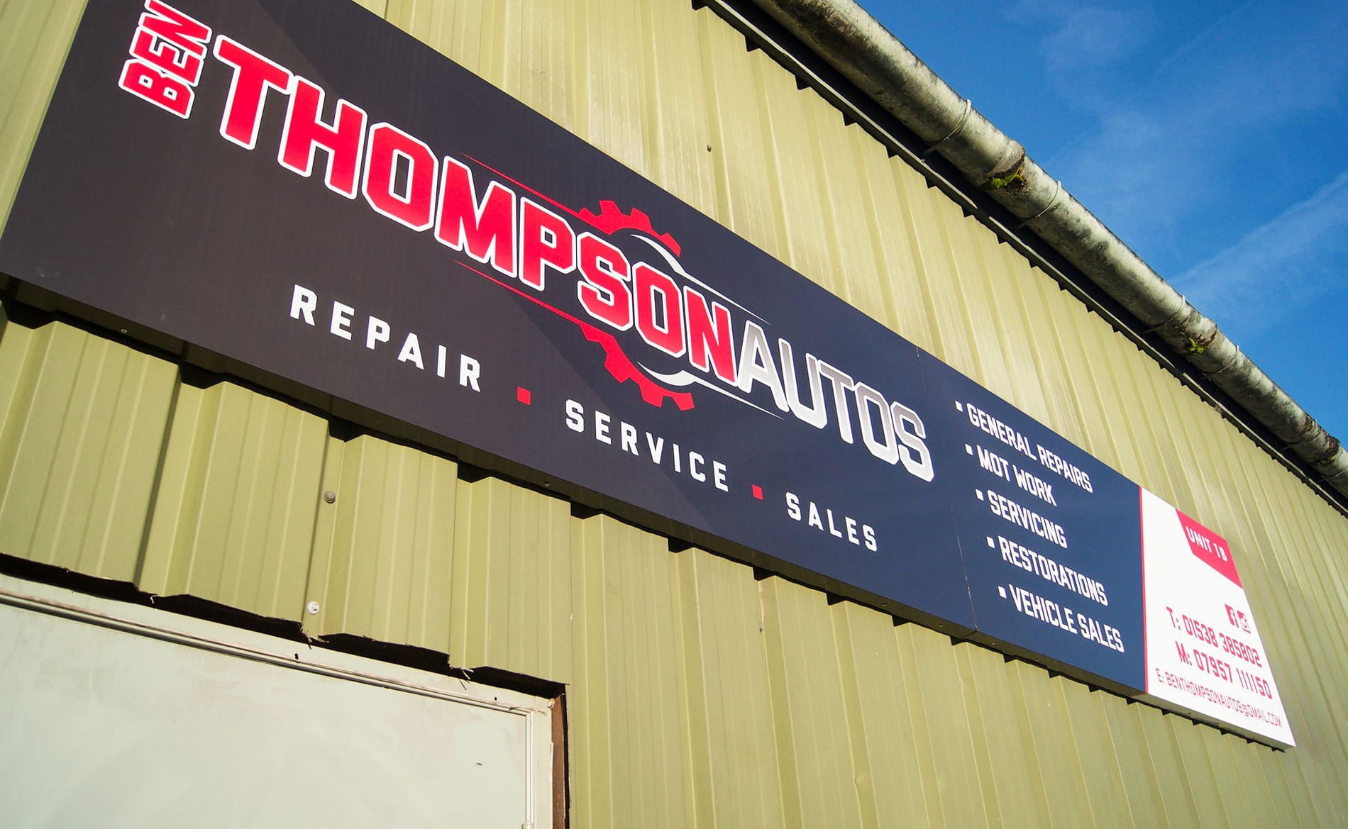 View Larger Image View Larger Image Ben Thompson AutosAlex Stanley2018-03-15T11:05:48+00:00 Project Description Project Details Categories: DesignSignage By: Alex Stanley Think our products are great, share on social media FacebookXEmail Related Projects ARG Refinishing Gallery ARG Refinishing Comley’s Gas Services Gallery Comley’s Gas Services The Property Photographer Gallery The Property Photographer HSE Safety Signage Gallery HSE Safety Signage